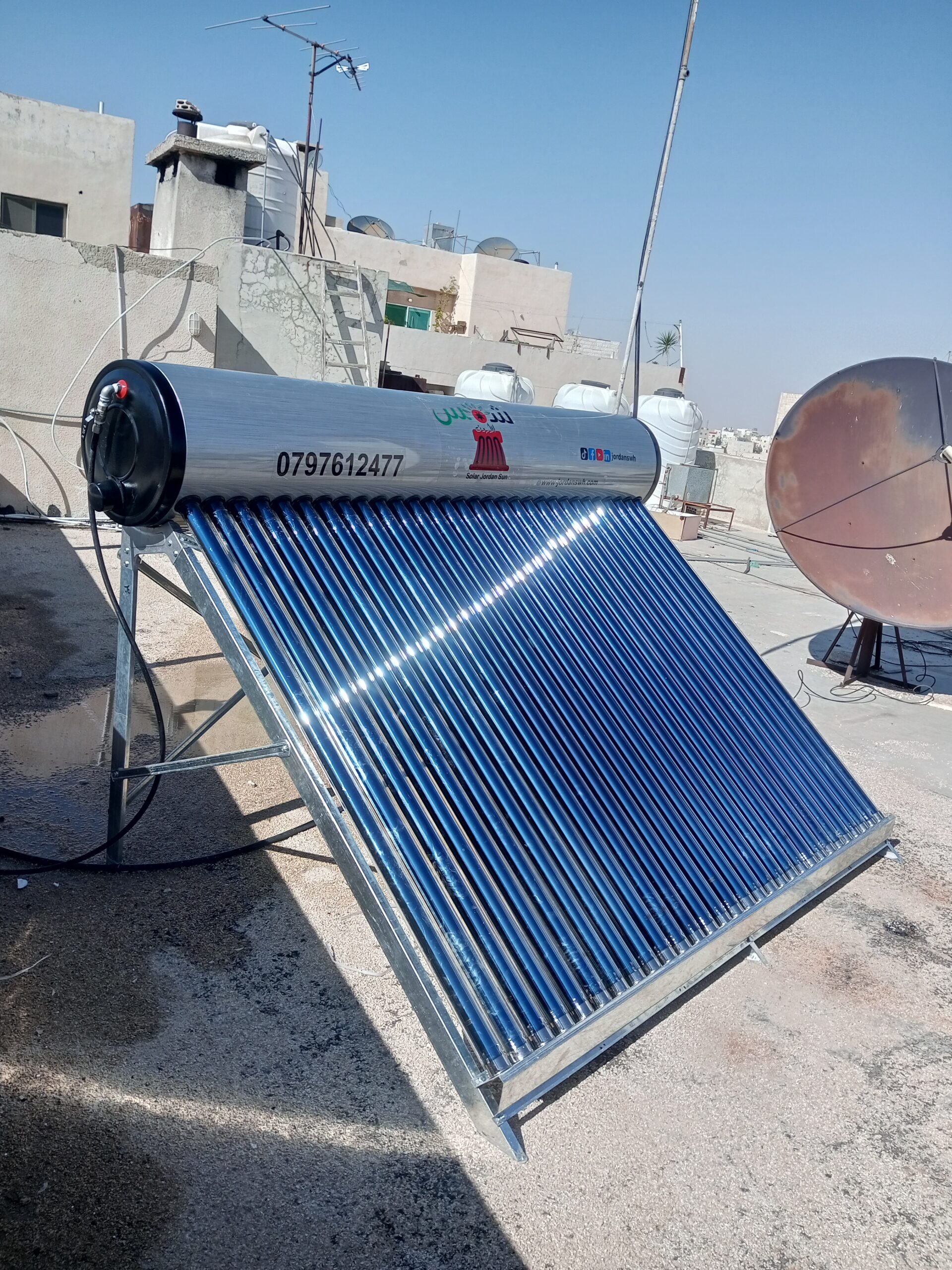 قاعدة السخان الشمسي سماكة 1.3-1.8 م ، صاج إماراتي مكلفن G 90. لا تصدأ، تجمع وتوضع على السطح بدون أي تثقيب. | القاعدة | |